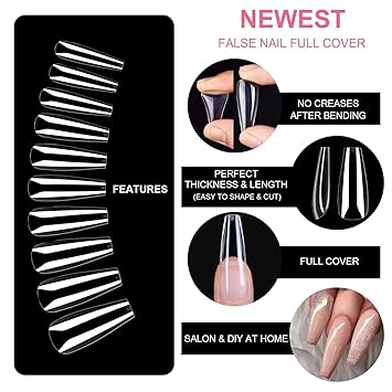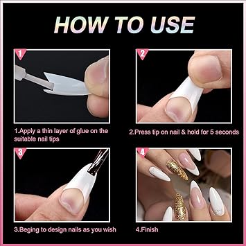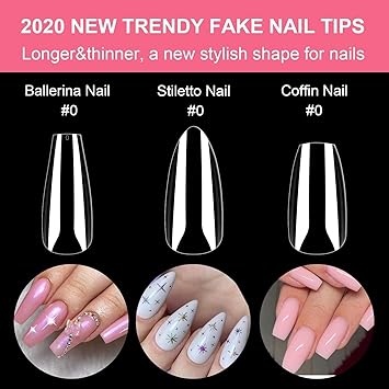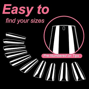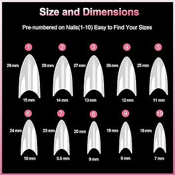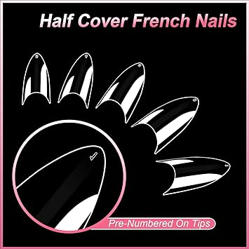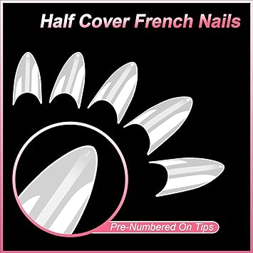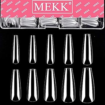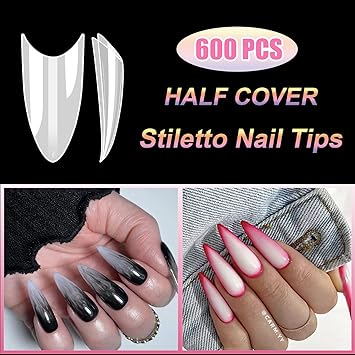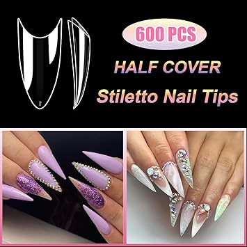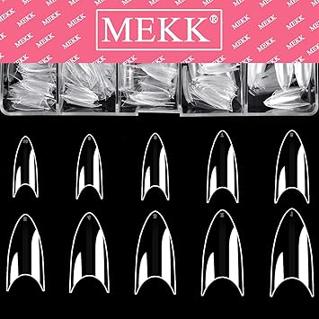 - MEKK Half Cover Stiletto Nail Tips :600PCS in 10 Sizes,suitable for most fingers.Meets your 60 times nail art needed. These fake nails are designed with natural color and half cover. Easy to file, paint, and apply. Once painted with the right glue or decorated with colorful decorations, they look very natural and nice holding the color without separating or streaking, making your tips magical and stylish.