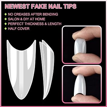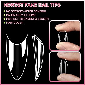 - High Quality Material &Long Lasting:MEKK Half Cover Stiletto Nail Tips are made with high quality ABS material that can last a long time.Plus,ABS is kind of green enviromental material,and makes the nails durable,breathable,light even no pressure on your own nails.Fit well to your natural nails.Non toxic,No smell,No harm to your health.
