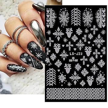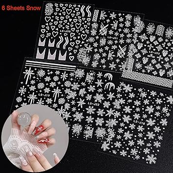 • Package:You will get 6 sheet White snowflakes nail stickers.glitter snow flakes elk love heart designer nail art,Christmas snow fashion theme nail art-3d Self-Adhesive glitter christmas nail decals sugarcraft sweater christmas deer sliders french manicure decal.