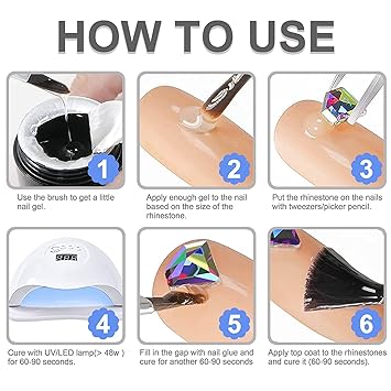 1.Apply the glue on nail surface, the amount is according to the volume of the jewelry.