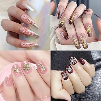 2.Use tweezers hold the letter nail charms, put on nail surface. (don't move it randomly after fixing it).