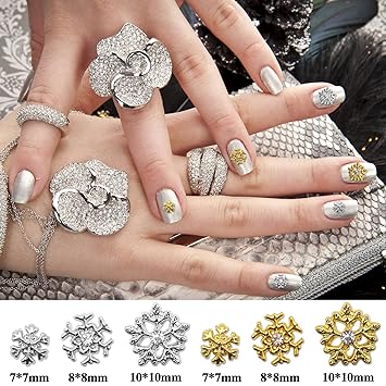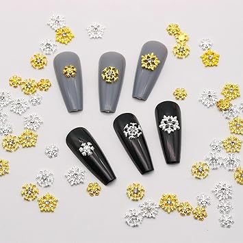 SILPECWEE 60pcs Snowflake Nail Charms for Christmas Winter Shine Jewels 3d Art Holiday Nails Design Rhinestone Crystal Decoration Accessories