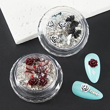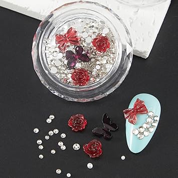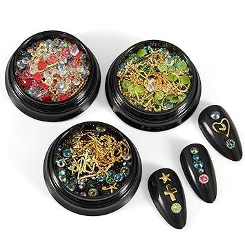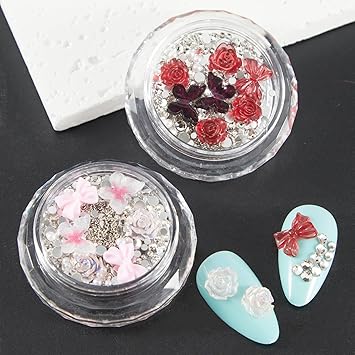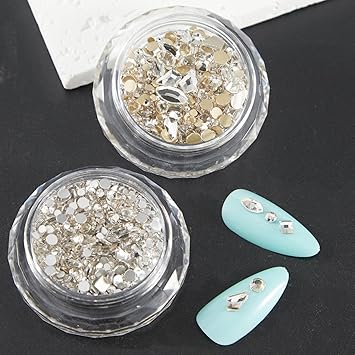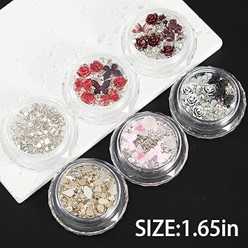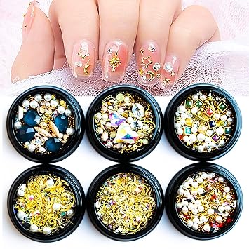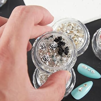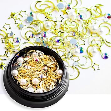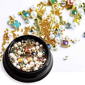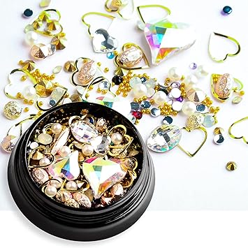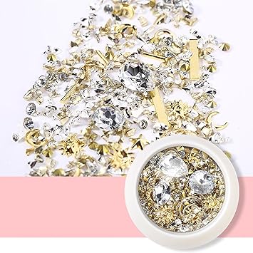 - 【PERFECT DESIGN FOR NAILS】Most popular design 3D decorations, Mix-shape and mix-size nail metal studs, crystal, beads, charm, rhinestone. the best choice to open the window of sparkly nails.