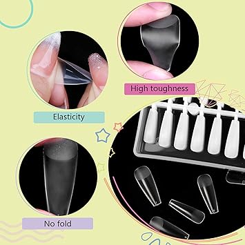 • No Trace Fake Nails & Long-lasting - Saviland's full/half-coverage soft nail gel nail tip feature a special non-slip design for a tight fit between nails and fingers. And will make no trace even bend, bright and clear, you can more easily press, trim, and paint on false nails to make your dream nail's shape. The soft matte coffin nail tip can last more than 21 days according to the proper application, with no harm to your nails. Perfect for enjoying nail fun with your friends and family.