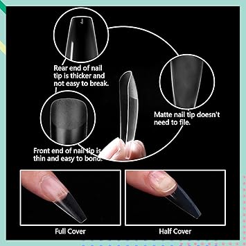• Professional Matte Coffin Nail Tip - Saviland soft nail gel nail tip are ultra-thin dual-use full half-paste, light and thin, have good flexibility, coffin-shape, matte texture, no need to file, can save sanding time, can quickly complete the nail extension operation, and does not hurt the nails.