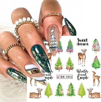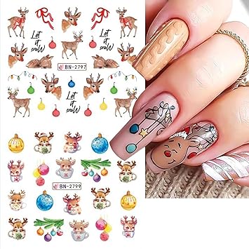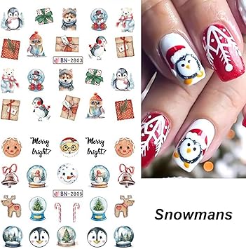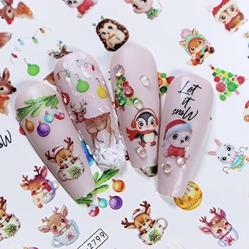 Cute Christmas Nail Stickers Cartoon Animal Water Transfer Decals Snowman Elk Penguin Bear Design Sticker Accessories for Women Girls Manicure Decoration 12 Sheets