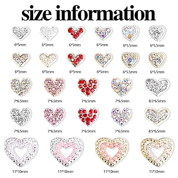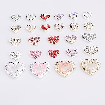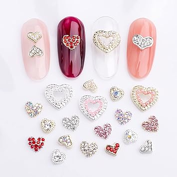 26 Pieces 3D Heart Nail Charms for Art Nails Silver and Gold Gems Rhinestones Love Crystals Diamonds Alloy Decorations Women