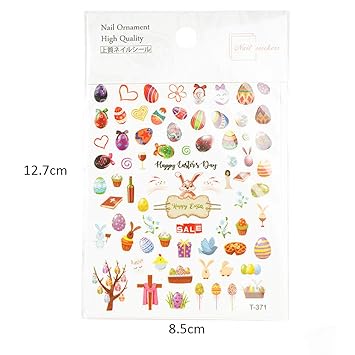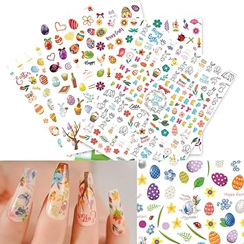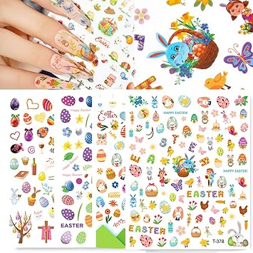 Easter Nail Art Stickers 8 Sheets 3D Self-Adhesive Decals Supplies Bunny Eggs Chicken Cartoon Rabbits Sticker Set Manicure Decorations for Kids Girls Women Sliders Decal Accessories