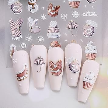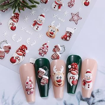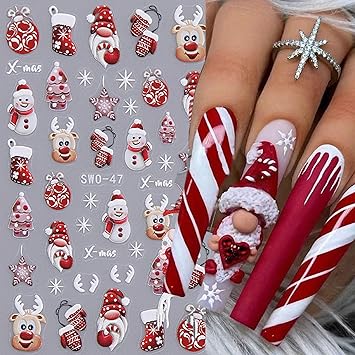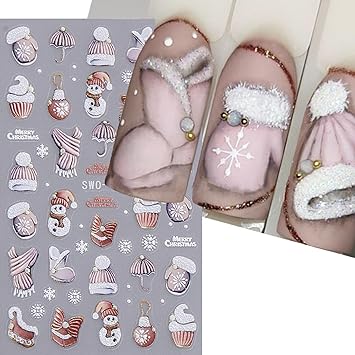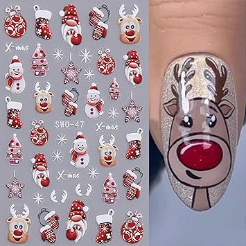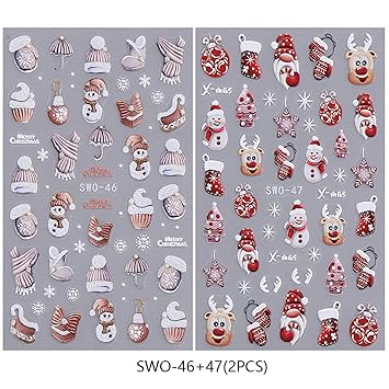 Xmas Cute Reindeer Nail Stickers Christmas Lovely Snowman Elk Designs Decals 2PCS Winter Stocking Glove Santa Claus Snowflake Back Adhesive Art Slider for Women