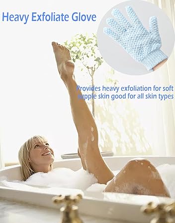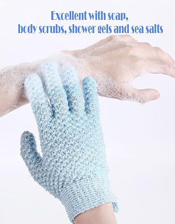 • 【INNOVATIVE DESIGN 】Thicker mitts last longer, medium roughness calibrated for even exfoliation and less harsh friction. Scrubbing gloves stay in place and will not fall off. Several rows of elastic around wrist area provide comfort and support, even when soapy.