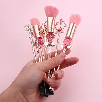 • SAILORMOON DESIGN - Channel your inner anime goddess with these beautiful SailorMoon-themed makeup brushes. The rose gold plated cute and sturdy magic wand brushes handle and high-quality synthetic fiber bristles make for an adorable and shiny addition to your makeup collection. Perfect for SailorMoon lovers, makeup artists, and anyone who wants to add a touch of magic to their makeup routine
