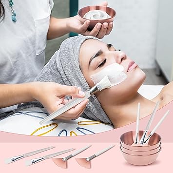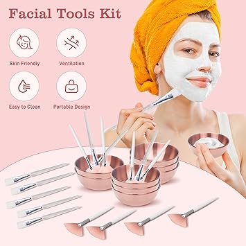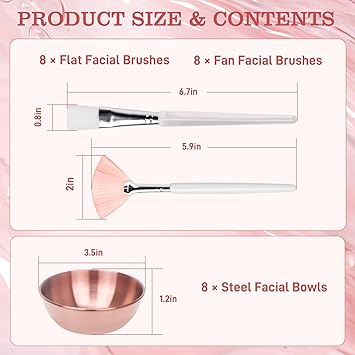 24Pcs Esthetician Supplies for Facials Set - Face Mask Applicator Brushes Tools, 8 Rose Gold Facial Bowls, Fan Brushes, Flat DIY Skincare & Treatments