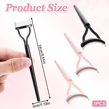 3 Pcs Eyelash Separator Tools, Washable Stainless Steel Combs to Separate Lashes Practical Reusable Lash Comb Mascara Tool for Combing Separating
