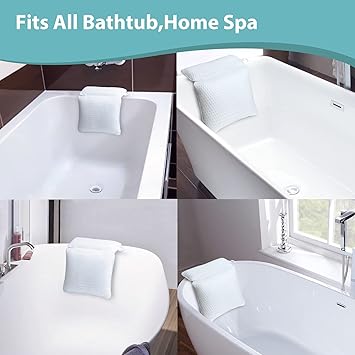 - 6 SUCTION CUPS: Our bathtub pillow will not fall off your bath tub, six powerful suction cups make your pillow stays in place on most smooth tub surfaces, which gives the most relaxing bathing experience. It can be used for soaking tub, hot tub, straight back tub, jacuzzi, whirlpool and clawfoot tub and more.