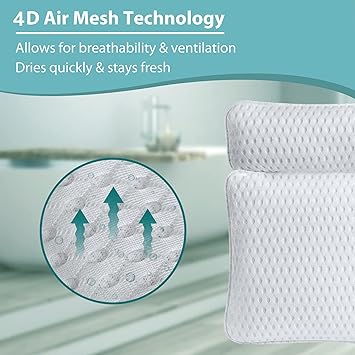 - 4D AIR MESH FABRIC: Made by Unique 4D Air Mesh Technology, our breathable bath pillow allows constant and refreshing airflow. dries very fast and allows for breathability and ventilation.