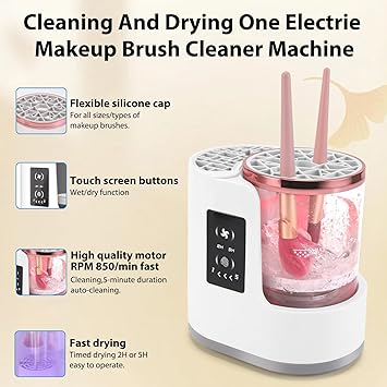 WINB 3-in-1 Electric Makeup Brush Cleaner, Dryer & Storage - Timed Drying Available Fast Cleaning Healthy Skin Care Automatic Tool for All Size Brushes