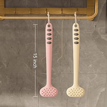 Bath Body Brush,Non-Slip Handle Built-in TPR Enhance Grip,15 in Long with Comfy Bristles Gentle Exfoliation Improve Skin's Health and Beauty for Women Men Shower Brushing (Pink)