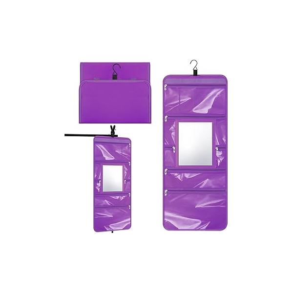 - Makeup Storage Bag with Mirror: this hanging makeup bag neatly and securely stores all your makeup, hair accessories, and other clothing items, and the internal mirror also helps you organize your hair and makeup accessories flexibly, good for any girl working out or dancing