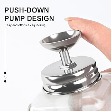 • Sturdy Material: Made up of high-quality glass and stainless steel, the push down pump dispenser is more sturdy and reliable than plastic bottle. And the bottle is clear so that you can see the residue liquid