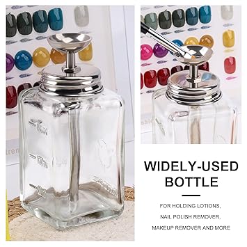 • Appropriate Size: The push down pump dispenser has a large capacity of about 6 oz/ 180 ml, holding enough nail polish remover, makeup remover and other liquid. The size of glass pump bottle is 2.1*2.1*4.9inch, making itself portable and convenient to use
