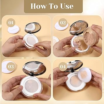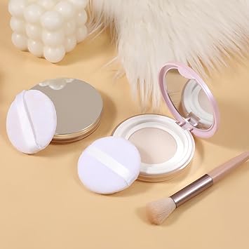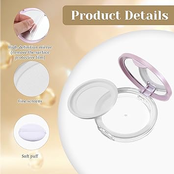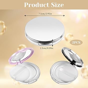 2 PCS Loose Powder Container with Puff Refillable Compact Mirror 0.17/0.7 Oz Empty Powders Travel Case Reusable Plastic Portable Makeup Powderes Cases for Women
