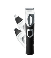 Wahl Pro Series® Rechargeable Eyebrow, Ear & Nose Hair Trimmer for Men is perfect for eyebrow, detail, and nose hair trimming. Designed for versatility, this eyebrow trimmer features a precision detail attachment for intricate detailing around the beard and mustache, a rotary trimming head for hygienic nose and ear hair removal, and a DualTech® double sided detail trimmer for shaping eyebrows. Attach the included multi-length guide comb to the DualTech® trimmer head to achieve up to 4 different eyebrow trimming lengths or add the small detail guide to the detail trimming head to achieve precise detail cutting lengths or intricate hair trimming designs. Enjoy cordless power with up to 2 hours of run time on a full charge and extended runtime without the constant need to recharge, making it perfect for multiple grooming sessions. Hygiene is made easy with the detachable stainless steel heads. Simply remove the heads from the trimmer body, rinse with water, and allow time to dry before reattaching. To add further protection and to ensure longevity of your nose hair trimmer head, attach the included protective cap during storage. Also included in this nose hair trimmer for men is a storage pouch to hold all of the accessories in one place. Durable and convenient, this grooming kit for men is your go-to tool for a well-trimmed look. Note: We test our Wahl hair trimmers for men for cutting performance prior to packaging with a hygienic fiber. We do our best to clean the product to remove any testing particles, but it is possible a few may remain. They are not hair and can be simply wiped off. Item includes a USA plug for USA outlets.