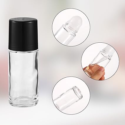 2pcs Black Clear Oil Roller Bottles, 1.06oz Portable Empty Roll On Ball Container Refillable Deodorant Vials Leak-Proof Cosmetic Containers for Fragrance Massage Perfume Essential