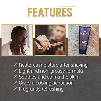 Woody's Shave Relief Balm - Post for Men, Soothing Aftershave Treatment, Calms & Heals Razor Burn, Hydrating Men's Balm, 6 Oz