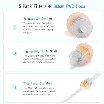 5PCS Microdermabrasion Filters + 1PCS 39" Silicone Tube, Replacement Filter Tube Set for Vacuum/Diamond Machines