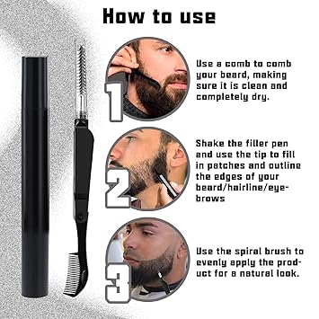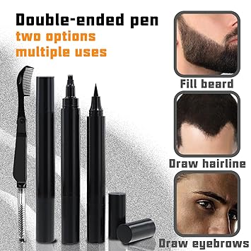 4PCS Beard Pen Filler and Brush Double Head for Men, Enhancement Barber Pencil Kit Water Proof Long Lasting Coverage, Dye Eyebrow Hairline Moustache(Black)