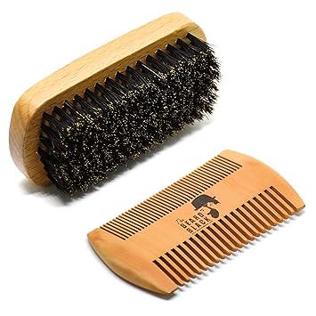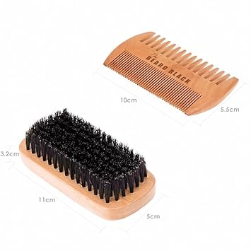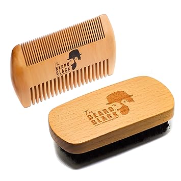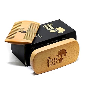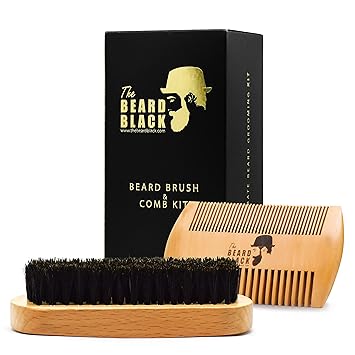 Beard Brush & Comb Set for Men - Natural Boar Bristle Brush, Dual Action Pear Wood Comb, Gift Box Travel Pouch. Enhances Growth Styling with Balm Oil Distribution by The Black (Black)