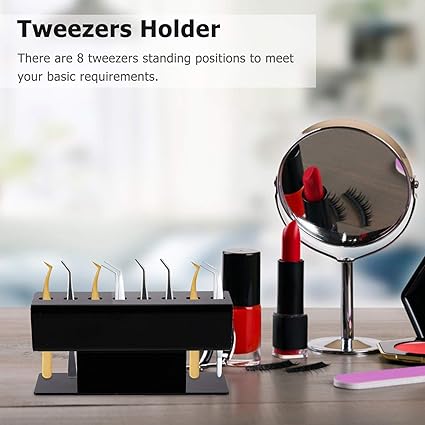 Beaupretty Eyelash Extension Tweezers Stand Holder 8 Holes Acrylic Display Storage for Extensions Supplies Accessories Tools Black