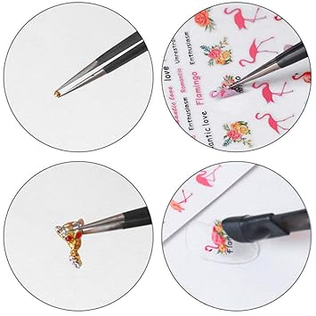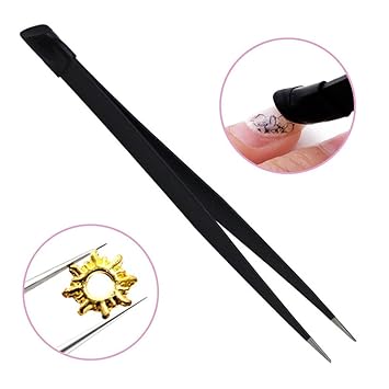 4 Pcs Multifunctional Manicure Tweezers Professional Pointed Tweezer with Rubber Embossing End for Nail Art