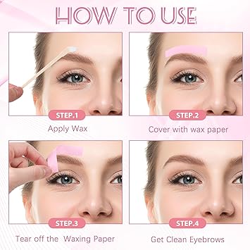 - Simple to Use: keep skin dry before, smear wax on skin with eyebrow wax sticks, then pick up facial waxing strip and carefully tear and keep it along hair for about 2 to 4 seconds, then tighten skin with one hand and quickly pull up the strip with the other hand, and finally smear gel on the skin