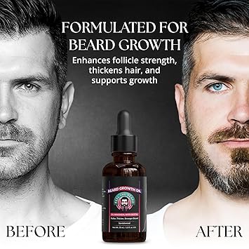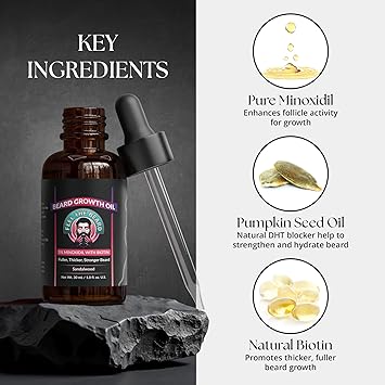 Beard Growth Oil For Men - 5% Minixodil Biotion Pumpkin Seed & Argan DHT Blocker 30 ml 1.0 fl oz Sandal Wood Scent Strengthen Softner Moisturizer Full