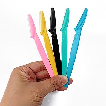 65PCS Eyebrow Razors with Safety Cover, Face Razor for Women and Man Smooths Away Peach Fuzz, Easy to Use Knife Trimming Shaping Eyebrows (5 Colors)