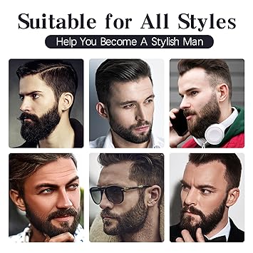 Long-Lasting Water-Resistant Black Men's Beard Grooming Kit - Micro-Fork Tip Pen, Bristle Brush for Natural Looking Mustache, Eyebrows, and Facial Hair Styling