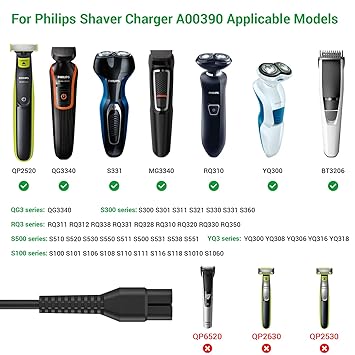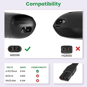 4.3V Charger for Philips Norelco A00390 Old One Blade Model QP2520 MG3740 QP2521 QP2522 QP2515 MG5700 MG3720 QG3330 QT4000 Electric Shaver Compatible with Phillips OneBlade Replacement Power Cord