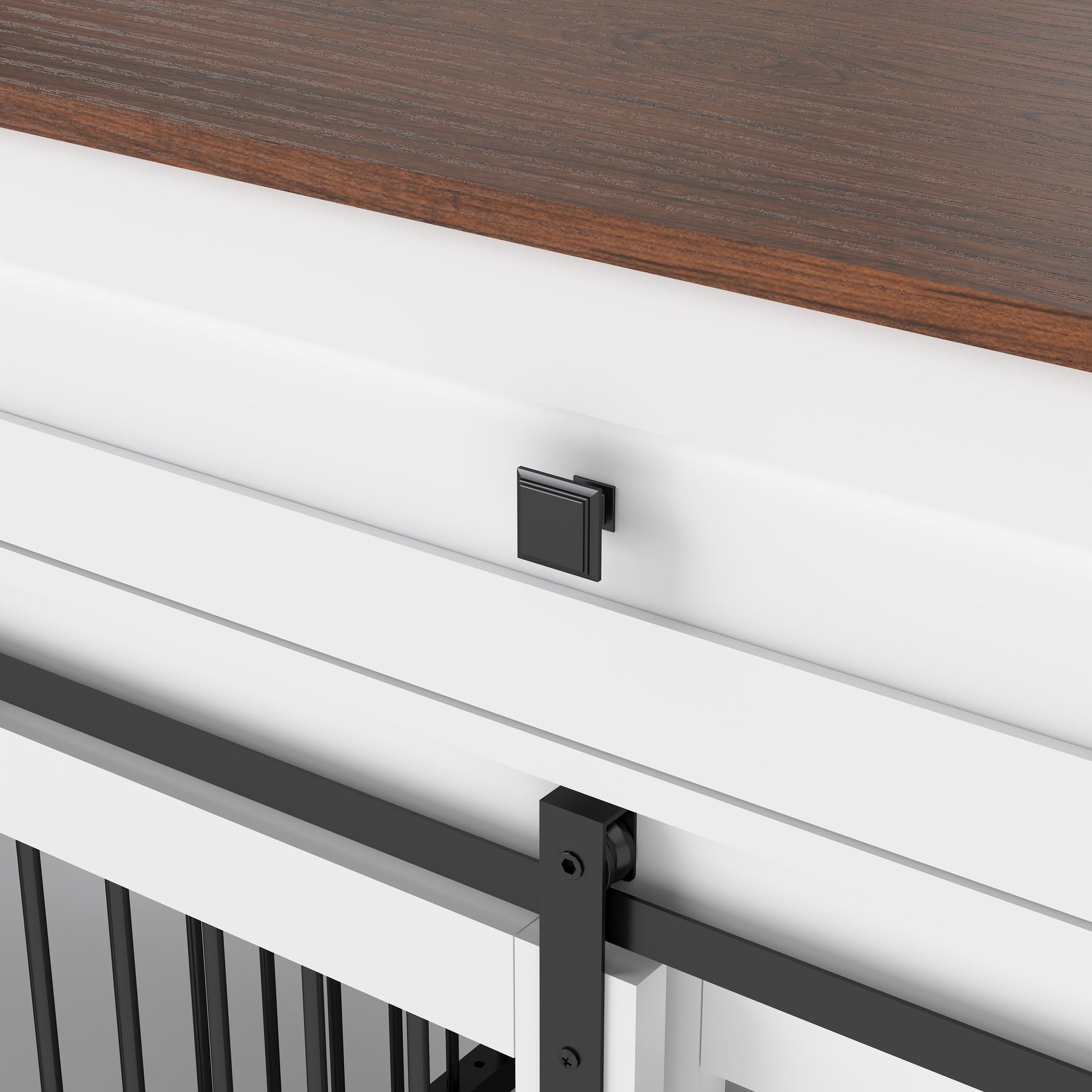 Give your pets a home that feels like part of the family with this thoughtfully designed dog crate furniture. Crafted with a warm rustic wood finish and black metal accents, it blends seamlessly into your space as a stylish sideboard or storage cabinet. Inside, a removable divider lets you house two dogs comfortably or create one spacious area for a larger pup. Sliding doors offer easy access, while two drawers keep leashes, toys, and treats neatly tucked away. Whether placed in the living room, hallway, or bedroom, this dog kennel furniture provides both comfort for your dogs and convenience for you—with a look you’ll love living with every day.