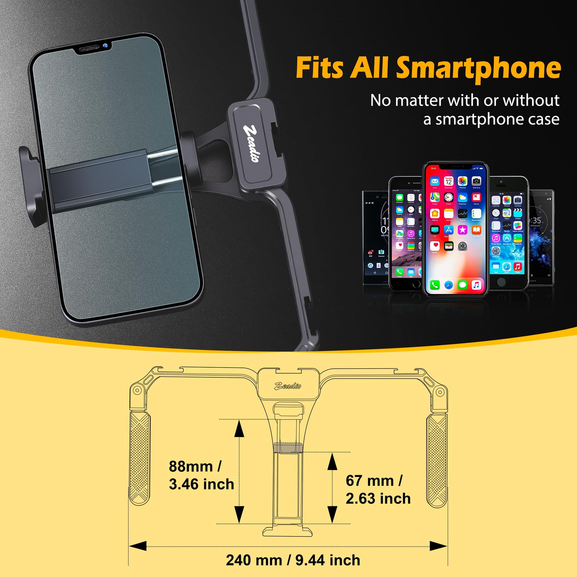 Zeadio Aluminum Smartphone Stabilizer Grip, Foldable Cellphone Video Rig, Filmmaking Vlogging Case, Phone Stabilizer Tripod Mount for iPhone and Android Smartphones