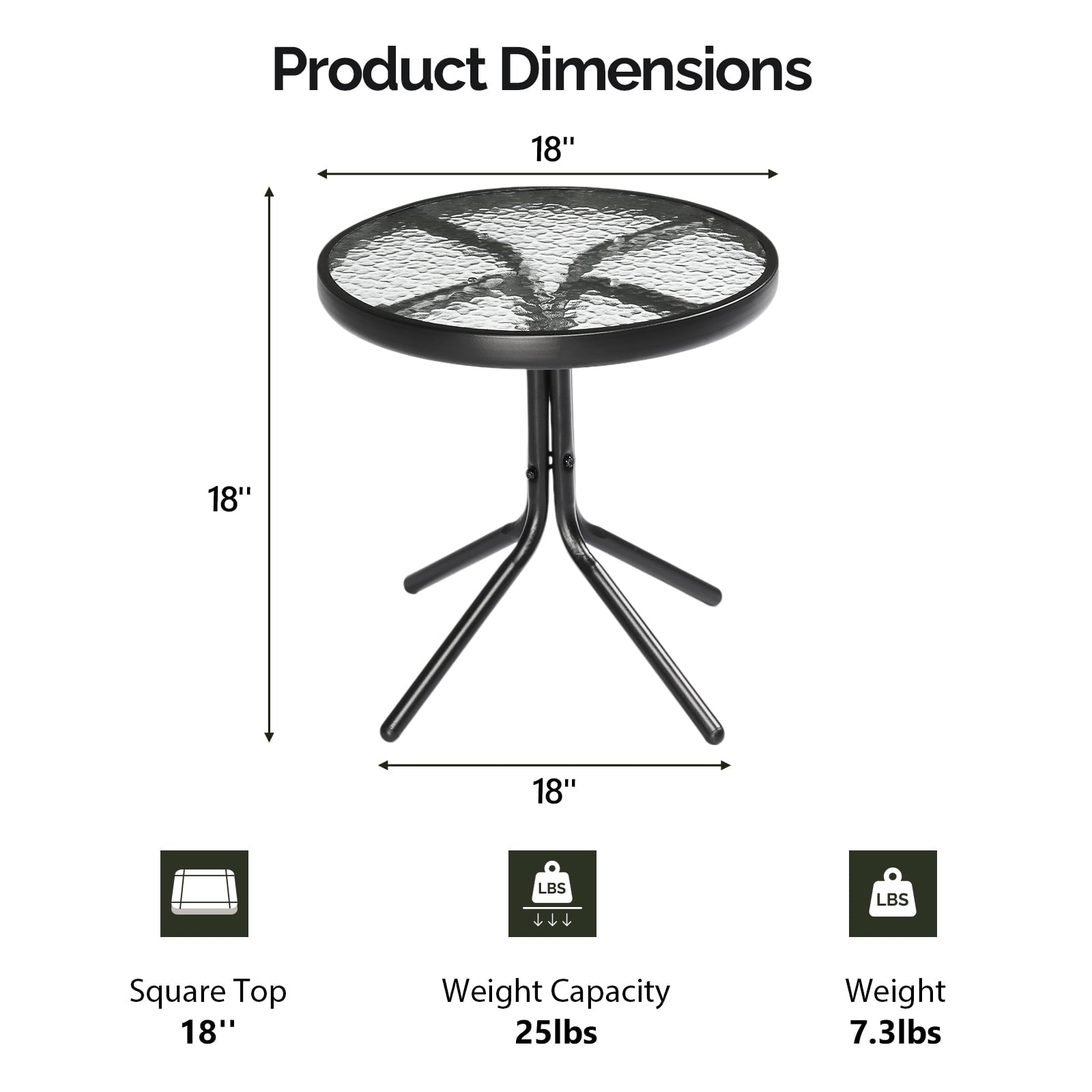 Elevate your outdoor area with the Zimtown 18' Round Tempered Glass Outdoor Patio Side Table! This glass side table features a scratch - resistant, ripple - textured tempered glass top for a sleek look and easy cleaning. Its heavy - duty metal frame with a powder - coated finish ensures weather resistance and stability. Adjustable foot pads prevent wobbling. With an 18in top, it fits various settings as a patio end table or outdoor side table, offering space for drinks or decor. Perfect for patios, balconies, and more, it adds a modern touch as a patio coffee table.