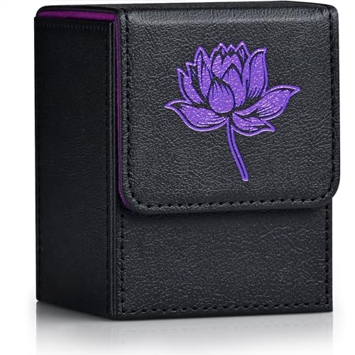 ZLCA Card Deck Box for MTG Cards with 2 Dividers, Card Storage Box Fits 100+ Single Sleeved Cards, PU Leather TCG Card Deck Case Holder for Magic Commander Yugioh (Black&Purple,Lotus)