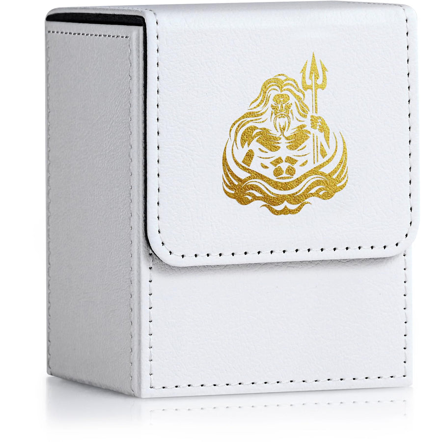 ZLCA Card Deck Box for MTG Cards with 2 Dividers, Card Storage Box Fits 100+ Single Sleeved Cards, PU Leather TCG Card Deck Case Holder for Magic Commander Yugioh (White,SeaKing)