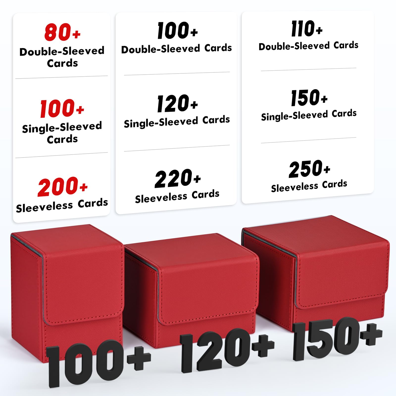 - ๐๐ถ๐ด๐ต ๐๐ฎ๐ฝ๐ฎ๐ฐ๐ถ๐๐๏ผCompared with the traditional plastic card box, the durable leather card deck box gets an upgrade, and offers more room for your cards. Specially designed for Commander EDH players, but also for all regular decks with extra cards or tokens. Designed to hold 80+ double-sleeved cards or 100+ single-sleeved cards. If you donโt sleeve cards and use this for non-premium cards/games, this will hold over 200 cards.