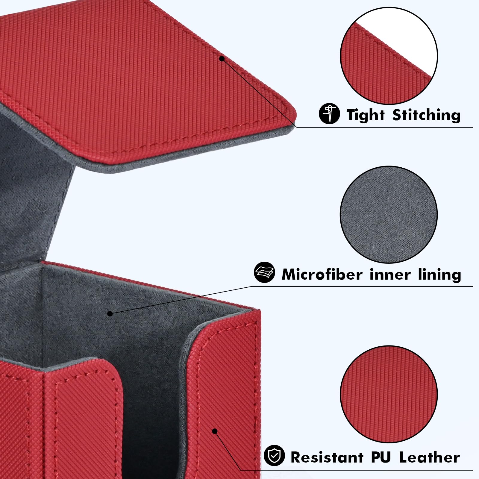 - ๐ฆ๐๐ฟ๐ผ๐ป๐ด ๐ ๐ฎ๐ด๐ป๐ฒ๐ ๐๐ฒ๐๐ถ๐ด๐ป๏ผTight stitching and 8 powerful magnets keep the card deck case secure during transport. Even when fully loaded and turned upside down, the card holder case stays tightly closed at all times, no need to worry about losing your precious cards. The stitching is clean and all corners look great and are glued well.