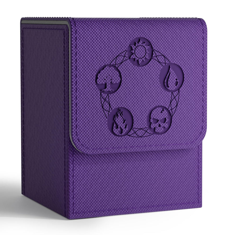 ZLCA Card Deck Box for Trading Cards with 2 Dividers, Card Storage Box Fits 100+ Single Sleeved Cards, PU Leather Strong Magnet Card Deck Case Holder for Magic Commander TCG CCG (Purple)