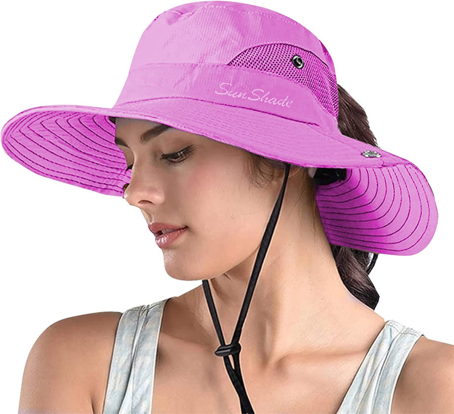 ZOORON Women's Ponytail Safari Sun Hat,Wide Brim UV Protection Outdoor Bucket Hat,Foldable Beach Summer Fishing Hat